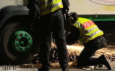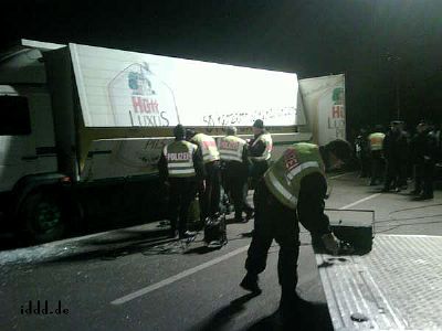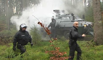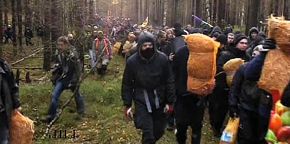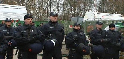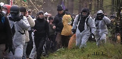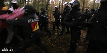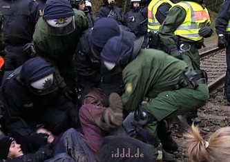 CASTOR, ciąg dalszy ![]() 09.11.2010, Gorleben, Niemcy, Nie pomogło rozgrzebywanie torów, nie pomógł też patent na wykolejenie. Castory dotarły do Dannenberga gdzie są przeładowywane na pojazdy drogowe, ostatnie 50 kilometrów będzie straszne.. Ponad 3 000 osób, pomimo ujemnych temperatur wytrzymuje jeszcze. Policja polewa demonstrantów co siedzą na drogach wodą i czeka aż zamarzną, wtedy ich wynosi. Polizja narzeka że musi tyle pracować. 8.11.2010 musiała wynieść z torów 2000 osób. Media mówią o 20 000 policjantów, oni będą opłaceni z podatków, czyli z pracy osób pracujących. Przemysł atomowy, za wojnę policji z demonstrantami nie musi płacić. Demonstranci aresztowani płacą za spisanie przynajmniej 80 Euro. Policja bije w lesie. Używa ona pał tonfa, widziałem też nunczaku oraz gazu łzawiącego. Nunczaku jest takie szybkie, że kamera wychwyciła tylko smugę. Jak wygląda wynoszenie demonstrantów widać na zdjęciach. Proszę zauważyć to wyrafinowane miażdżenie dziewczynie noska. Policja mówi, że jest mniej gwałtu. Społeczeństwo ma w zapasie blokadę traktorów, blokadę Greenpeace - ciężarówkę z piwem Greenpeace zabetonował na wjeździe z dworca towarowego na drogę do Gorleben. Inżynierowie policyjni całego 8-go listopada nie dali rady odblokować drogi, w ciężarówce siedzą zabetonowani aktywiści greenpeace, by ich nie zranić trzeba specjalnych metod. Na drodze siedzą jeszcze demonstranci oraz owce ostatnim znanym bastionem będzie 300 traktorów. Greenpeace pomierzył 8.11.2010 r.promieniowanie neutronów i gamma, jest ono 480 razy większe niż otoczenia. Pomiar w mikrosivertach na godzinę. Castory nie zatrzymują całego promieniowania!! Policja stojąca 10 metrów od Castor dostaje 250 razy promieniowaniem gamma po jajach - ale to ich zawód. K.P. | |||