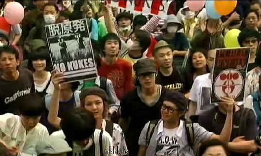 Pierwsze demonstracje przeciwko energetyce atomowej w Japoni13.06.2011 Krzysztof Puzyna 3 miesiące po katastrofie w Fukushima mamy wreszcie pierwsze demonstracje przeciwko energetyce atomowej w Japoni 11 marca 2011 roku stopiły się rdzenie trzech reaktorów w Fukushima. Dopiero teraz po 3 miesiącach przyznał rząd japoński z premierem Naoto Kan, że rdzenie trzech reaktorów w Fukushima stopiły się już 11 marca 2011 roku. 11 czerwca 2011 Japonia demonstruje niechęć do premiera i jego rządów oraz nawołuje do wyjścia z energii jądrowej w ciągu dwóch lat. Jak mi się wydaje, jest to jednak w Japonii jeszcze pobożnym życzeniem. Tam rządzą koncerny, ale ludzie po Fukushima budzą się. | |||||||