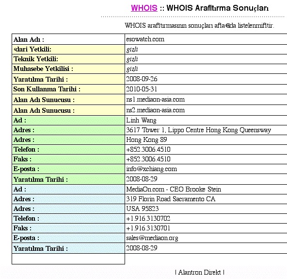 ![]() 2.4.2010 Krzysztof Puzyna ![]() In Deutschland sollen keine menschlichen Vorbilder mehr zu finden sein. Der zweite Aspekt ist die Ablenkung vom Thema der Zerstörung der Gesundheit und des menschlichen Geistes durch die dauerhafte, elektromagnetische Befeldung der EMF-Quellen wie Mobilfunk, WiFi, Wimax, LTE u.a. Diese menschliche Monster (vielleicht aus dem Umkreis von Spiegel ) verunglimpfen gezielt ausgewählte Personen. Sie betreiben Esowatch auf "esoterische Weise" anonym und auf verschlungenen Internet-Pfaden. Schauen Sie selbst meine Recherche. Diese Seite ist gleichzeitig auf einem Server u.a. mit Pornoseiten gehostet. Man kann den Besuchern zusätzlich Pornos andrehen. Mit der Zeit kann man dann behaupten Leute die Esowatch besuchen, besuchen auch animalporn4you.co oder lady-christina-femdome.com Aus meiner Recherche ergibt sich als Eigentümer und Verantwortlicher von MediaOn Brooke Stein (CEO ) in Sacramento Ca in USA. Der Betreiber von Namensserver sitzt in Hongkong. Angeblich soll MediaOn aus Deutschland operieren ("MediaOn founded in Germany".) Mir kommt im Sinn, es handelt sich nicht um Mobilfunkmafia, sondern um die deutschen Desinformationsdienste. Sie betreiben solchen Aufwand aus Steuern um engagierte, aufrichtige Menschen mundtot zu machen. Eine Anfrage an Sonderbeauftragten für Geheimdienste, wer ist der Auftraggeber solcher Verunglimpfungskampagne, wäre schon angebracht. Frohe Ostern! Zitate aus den Seiten von MediaOn: "Ist ein Server in der Türkei der richtige Standort? Wenn Sie auf MediaOn.com buchen, sind Sie ein Kunde von MediaOn.com mit Standort Türkei. Wir haben in der Türkei einen recht hohen Einfluss und können somit unseren Kunden die gewünschte Anonymität und Sicherheit anbieten. Von Ihrem Türkei-Urlaub werden Sie wissen dass Plagiate, Markenrecht und illegale Aktivitäten nicht besonders erfolgreich verfolgt werden und wenn es dann um Domains und Content/Inhalt geht, wird seitens der Türkei nichts unternommen. Somit können wir nicht gezwungen werden Daten freizugeben und wenn doch ist der Inhaber für Ihre Domain in Hongkong eingetragen, der Admin-C in Somalia. Somit erhalten die türkischen Behörden diese Daten, die auch jederzeit in Whois einsehbar sind. Sie sind mit uns garantiert auf der sicheren Seite! Was Sie hosten möchten, was unsere Kunden machen, ist uns egal. Sie können hosten was Sie möchten! Auf english sieht man dass es sich wohl um Deutsche Seite handelt - wohl gelogen MediaOn.com Hosting Benefits: No Contracts/Hidden Fees! No Hidden Setup Fee ! No Hidden Whois Protection Fee! Serious Hosting Offer ! One of our technicians is involved in the development of Debian GNU/Linux www.debian.org ! All customers can use our Free Online Proxy to hide IP addresses for surfing anonymously ! MediaOn founded in Germany. Made in Germany - A symbol of quality and reliability ! We are not a Reseller ! We own and operate in our own Data Center in Turkey ! We provide Business Cluster Web Hosting with 99,99% uptime and top speed ! NEW: All customers can use our 3 Virtual Business Office Services for FREE ! 99.99% Uptime SLA Guarantee and ICANN Protection by AlanTron !" | ||||||||
