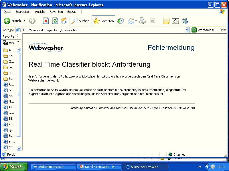 30.7.2008 Witam pofesora ja nie zapomniałem o linkach. Moje motto: Wszystko w swoim czasie albo nieco później.. Aktualnie na szybkiego polecam bardzo prosty i praktyczny projekt przeciwko cenzurze w Chinach wejście u mnie przez iddd.de Ja muszę parę słów napisać na temat dr vini khourana, ale niestety nie mam czasu. Może wystarczy panu po niemiecku mój artykuł, który właśnie kończę- najpóźniej za 3 tygodnie będzie chyba gotowy. Pozdrawiam przy 31 grad z Hamburga Krzysztof Puzyna 30.7.2008 Panie Profesorze podałem te bardzo eleganckie rozwiązanie ominięcia cenzury chińskiej, gdyż nie tylko tybetańczycy potrzebują wolności, ale również zagraniczni korespondenci sportowi. Jak pan pewnie właśnie słyszy: IOC wycofał się z gwarancji o olimpiadzie w Chinach bez cenzury. Chińczycy blokują strony internetowe jak im się podoba, a IOC nic nie będzie przeciwko temu robić. Prościutki java-script fotografuje strony. Linki można wybierać. Chińskie metody filtrowania nie skanują obrazków i przez to nie są w stanie przyporządkować ocenzurowanych adresów do obrazków i zaszyfrowanych adresów. Zaleta 1 tego programu można sfotografować własną stronkę Zaleta 2 tego programu nawet prości ludzie są wstanie nauczyć się go obsługiwać, gdyż Zaleta 3 tego programu nie trzeba nic instalować. Po prostu wpisuje się adres ocenzurowanej stronki w pole i już można ją odwiedzić. Chiński Firewall nie funkcjonuje! Wypróbowałem na programie Webwasher. Amerykański program do cenzury internetu Webwasher instalują firmy na całym świecie np dla sieci Intranet by pracownicy nie oglądali zakazanych stron w internecie tylko pracowali. Polscy przeciwnicy strony iddd.de podali moją stronkę o ukrytych antenach telefonii komórkowej na wieżach kościelnych jako stronkę pornograficzną. Webwasher ją odwiedził, zeskanował i obliczył, że strona http://iddd.de/umtsno/koscioly.htm zawiera 91 procent elementów pornograficznych. I to prawda nawiasem mówiąc jak się liczy każdą stojącą antenę za h.. ![]() (Uwaga: puknięcie prowadzi do pokazania całości obrazku) Screenshots u góry ilustrują dokładnie, dlaczego się cenzuruje porno - by można pod pretekstem porno wykluczać treści niewygodne. Pod picidae.net jak na obrazku świata u dołu znajdzie pan dalsze informacje m. in. jak zainstalować serwer lub proxy z picidae. Pozdrawiam profesora Jadczyka i zadaję bardzo ważne pytanie dotyczące rozporządzenia RRM z 21 sierpnia 2007 roku. Stoi te pytanie w mojej ekspertyzie dla Kamieńca Ząbkowickiego, ale dotyczy całego świata: Maksymalne EIRP nie jest obliczane z mocy nominalnych nadajników. Dane znamionowe typowych anten mają moc wejściową 300, 500 czy 600 lub 800 watów. Nawet jak weźmie się odpowiednie straty sygnału przez kabel i inne części jak regulator AFE i Combine (- nie znam polskiej nazwy) to obliczenie EIRP dla worst case w uczciwy sposób przynosi zatrważające zasięgi dla ponadnormatywnego pola. Operatorzy mówią takie moce są potrzebne by anteny się nie przegrzały i liczą worst case mocami bezkonfliktowymi, przyjmując moc wejściową 20- 40 watów. Ja się pytam, przecież zaniżenie 20-krotne maksymalnego obciążenia to zaniżenie bezpieczeństwa dla ludzi. Panie profesorze Jadczyk nie jestem elektronikiem, proszę mi powiedzieć jako specjalista lub podać źródła z jakim współczynnikiem bezpieczeństwa są konstruowane krótkofalówki by się nie przegrzały, czy inne elektroniczne urządzenia? Może zna pan współczynniki bezpieczeństwa dla radaru? Współczynnik 10 do 40 wydaje mi się jako inżyniera mechanika znacznie zawyżony. Tu jest przestrzeń na spekulacje dlaczego taka duża moc i do tego ukryta? pozdrawiam Krzysztof Puzyna Diplom Ingenieur (Maschinenbau) PS na to pytanie oczekuję wyczerpującej odpowiedzi do 15 września 2008 r. Jak dotychczas konkretna pomoc od strony ludzi z tytułami naukowymi i nagrodami jest bardzo bardzo rzadka. Czy mam ludziom polecać by robili tak jak druzowie czy talibowie i zaczęli podpalać śmiercionośne anteny? 9. 7. 2008 r. Witam Profesora Jadczyk, mam pytanie, widzę, że profesor poleca stronkę człowieka z obsesją przeciwko idei Tesli przesyłania energii bezprzewodowo na duże odległości - profesora Bruhna oraz z nim współpracuje. arkadiusz-jadczyk.org/links.html Moje pytanie - nie jestem z branży, ale dlaczego wyniki rezonansów EM, co Meyl pokazywał jeszcze w zeszłym wieku - mam jego pdf, dostało nagrodę Mit-u, patrz Marin Soljacic Czy profesor Marin Soljacic dostał wyróżnienie za kolorowe ilustracje, u Meyla są one czarno białe? Pozdro Krzysztof | |||||