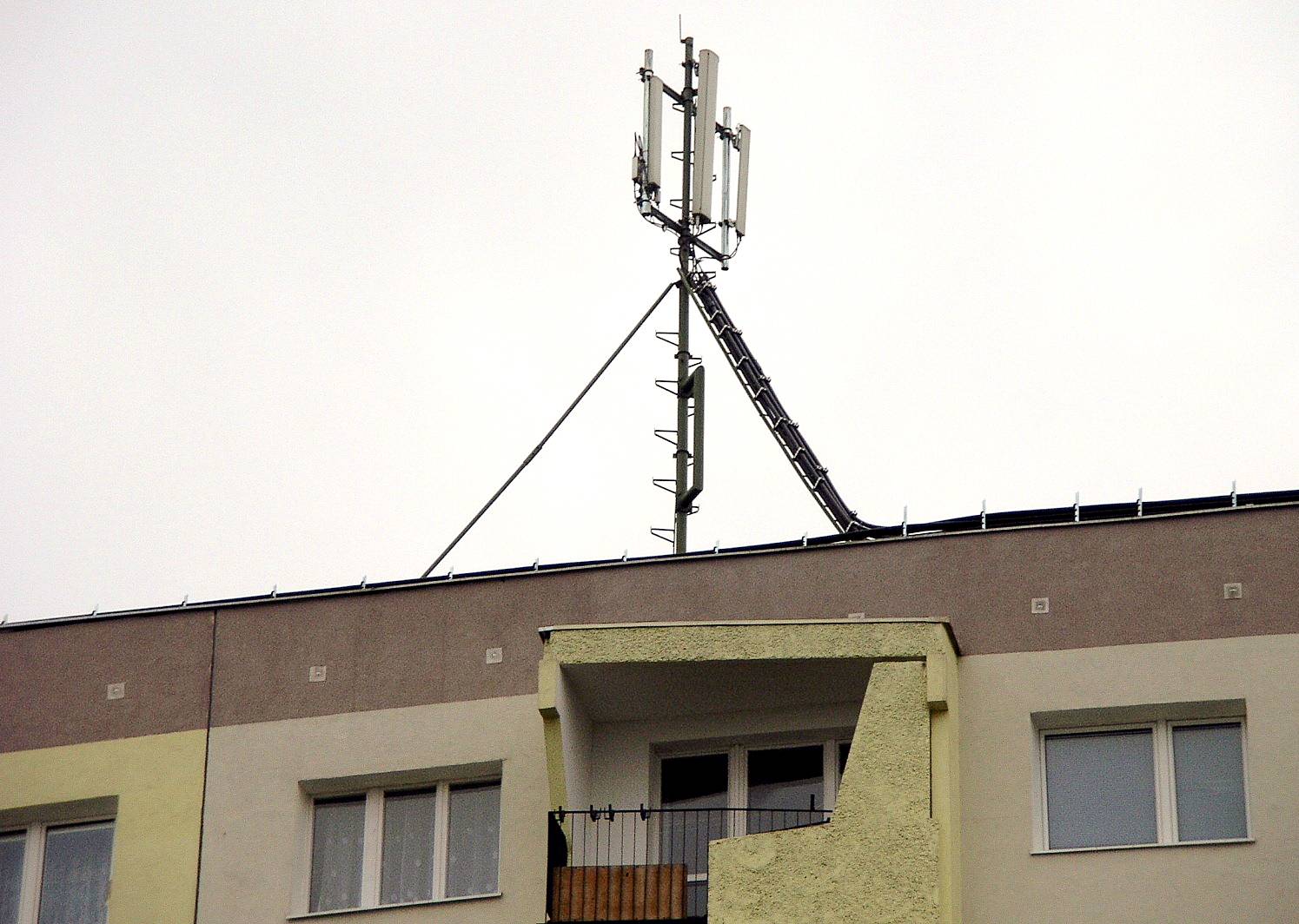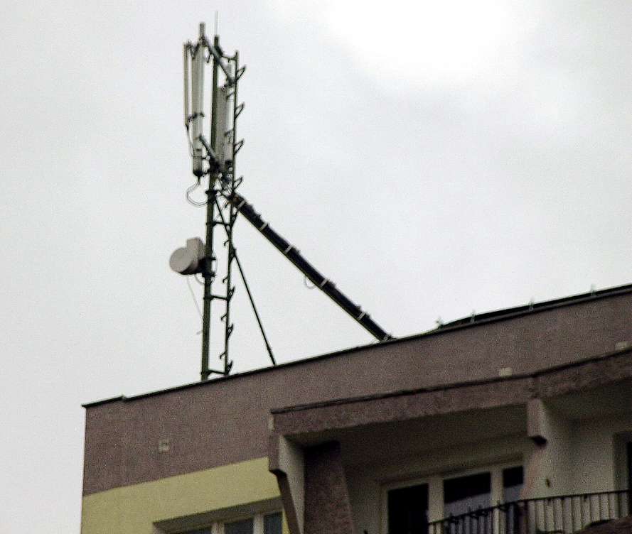 Stacja bazowa ERY (GSM 900 MHz) na bloku mieszkalnym na osiedlu Rusa 11. Jedna z najstarszych stacji bazowych w Poznaniu. Budynek jest wręcz naszpikowany antenami. Duża ilość radiolinii świadczy o tym, że jest to węzeł radioliniowy ERY. |