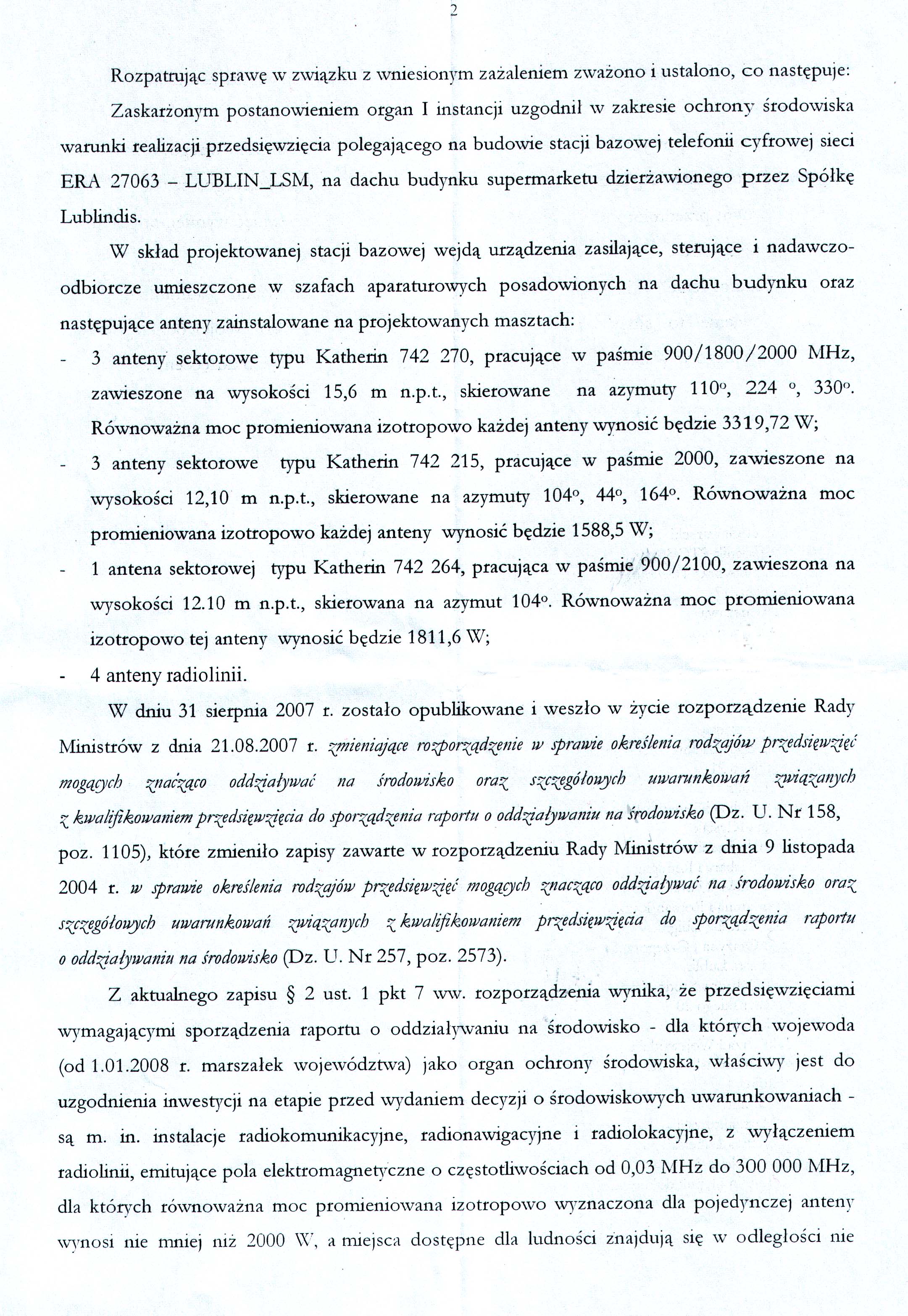 19 maja 2006, postanowienie PWIS, uzgadniam środowiskowe uwarunkowania dla ERA Nr 27063 Lublin-LSM