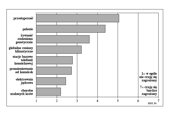 1. Przed czym trzęsą się Polacy.W roku 2006 trafiłem na pracę "Vor was zittern die Polen?", Przed czym trzęsą się Polacy - Analiza percepcji ryzyka w Polsce ze szczególnym uwzględnieniem telefonii komórkowej", Markus A. Grutsch, Andrea T. Thalmann z września 2004 (1) z której wynika, że Polacy boją się więcej telefonii komórkowej niż energii atomowej, ale przede wszystkim boją się przestępczości. Czyli oni już zapomnieli Czarnobyl i opór w Gdańsku i na Kaszubach przeciw elektrowni jądrowej. |