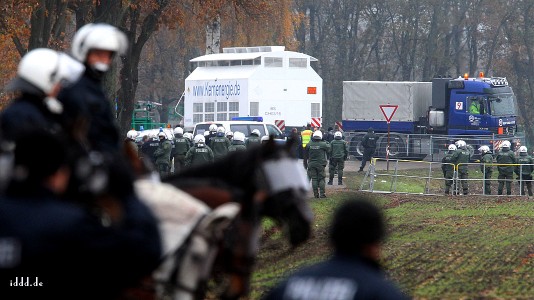 11 Castorów dotarło z ponad 30 godzinnym opóźnieniem we wtorek 9 listopada 2010 r. do Gorleben. Iddd.de jako jedyne uczciwe źródło podawało od początku prawdziwe oszacowania ilości milicji- 20000 ludzi. W ostatnim dniu ponad 20000 milicjantów* obrabiało 3000 zziębniętych pozostałych reprezentantów niemieckiego pospolitego ruszenia.
