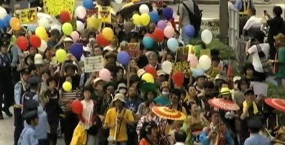 Pierwsze demonstracje przeciwko energetyce atomowej w Japoni13.06.2011 Krzysztof Puzyna 3 miesiące po katastrofie w Fukushima mamy wreszcie pierwsze demonstracje przeciwko energetyce atomowej w Japoni 11 marca 2011 roku stopiły się rdzenie trzech reaktorów w Fukushima. Dopiero teraz po 3 miesiącach przyznał rząd japoński z premierem Naoto Kan, że rdzenie trzech reaktorów w Fukushima stopiły się już 11 marca 2011 roku. 11 czerwca 2011 Japonia demonstruje niechęć do premiera i jego rządów oraz nawołuje do wyjścia z energii jądrowej w ciągu dwóch lat. Jak mi się wydaje, jest to jednak w Japonii jeszcze pobożnym życzeniem. Tam rządzą koncerny, ale ludzie po Fukushima budzą się. | |||||||