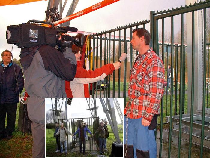Activist will chain himself to UMTS (3G) antenna installation fenceFrom: Frans van Velden 27 november 2005 - An activist against UMTS (3G) is ready to chain himself to an antenna installation fence tomorrow morning. He says his group will be satisfied only when UMTS is absolutely banned from the town of Spijkenisse near Rotterdam, The Netherlands. Monday morning operator Orange plans to install three UMTS antennas in a power pylon, about 75 metres from the nearest dwellings. The workers will meet with a crowd of people.