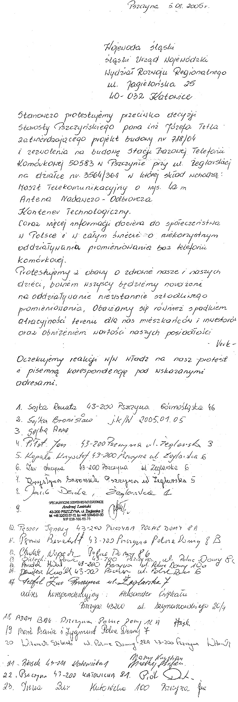 | Dla waszych wpisów i kontaktów księga i notes: "Przeciwko masztom telefonii komórkowej" |