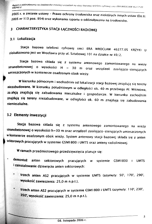 8.11.06, Raport oddziaływania na środowisko, charakterystyka stacji łączności radiowej cz. 1