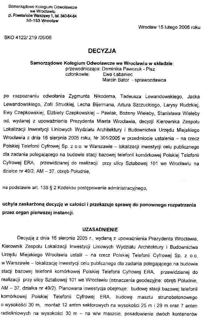.2.06, Wygrana mieszkańców przed Samorządowym Kolegium Odwoławczym