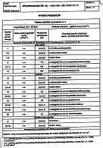 Wojewódzka Stacja Sanitarno-Epidemiologiczna w Katowicachul. Raciborska 39, 40-957 Katowice 2 skrytka pocztowa 591 Dział Laboratoryjny Oddział Badań Higieny Radiacyjnej Sprawozdanie nr: DL - 1438 / HR - 192 / 2004 / 01/ S Temat: POMIAR GĘSTOŚCI MOCY PROMIENIOWANIA ELEKTROMAGNETYCZNEGO w zakresie 0,3 GHz - 38 GHz dla środowiska. Klient: Spółdzielnia Mieszkaniowa Śródmieście 44-100 Gliwice, ul. Jasnogórska 9 Wyniki pomiarów, tabela wyników nr 4, budynek mieszkalny ul. Solskiego nr 5 - 9 kondygnacja mieszkanie nr 38, duży pokój Dopuszczalne poziomy pól elektromagnetycznych gęstość mocy promieniowania elektromagnetycznego dla miejsc dostępnych dla ludności: 0,1 W / m2 nw - wartość gęstości mocy poniżej dolnej granicy zakresu pomiarowego miernika z sondą AS-3 nr 13/98: tj. 0,03 W/m2 nw - wartość gęstości mocy poniżej dolnej granicy zakresu pomiarowego miernika z sondą AS-1 nr 13/98: tj. 0,02 W/m2 | |||||