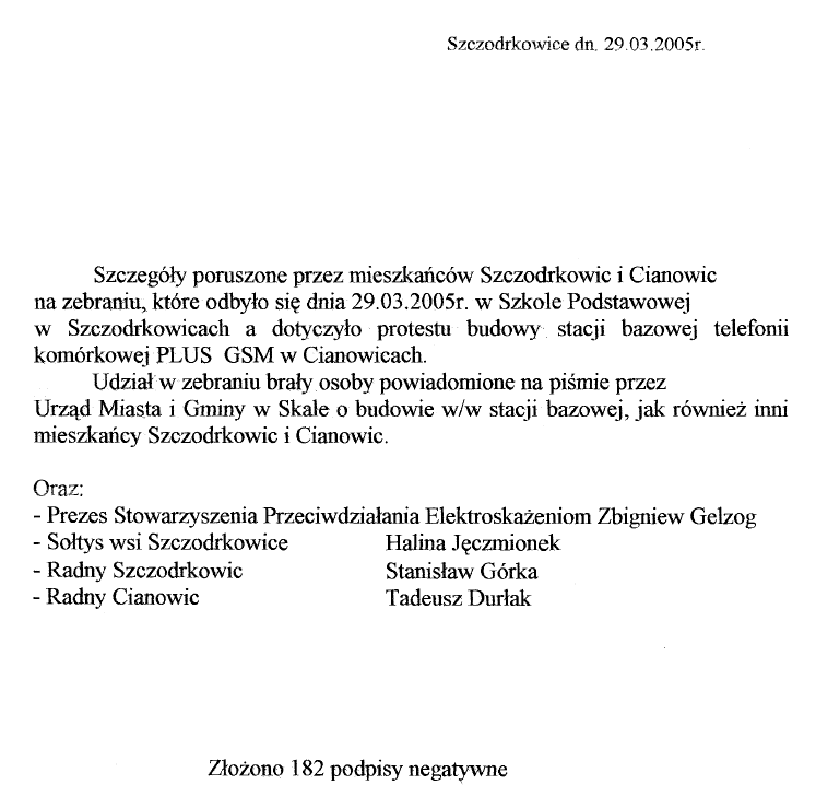 Dla waszych wpisów i kontaktów księga i notes: "Przeciwko masztom telefonii komórkowej"