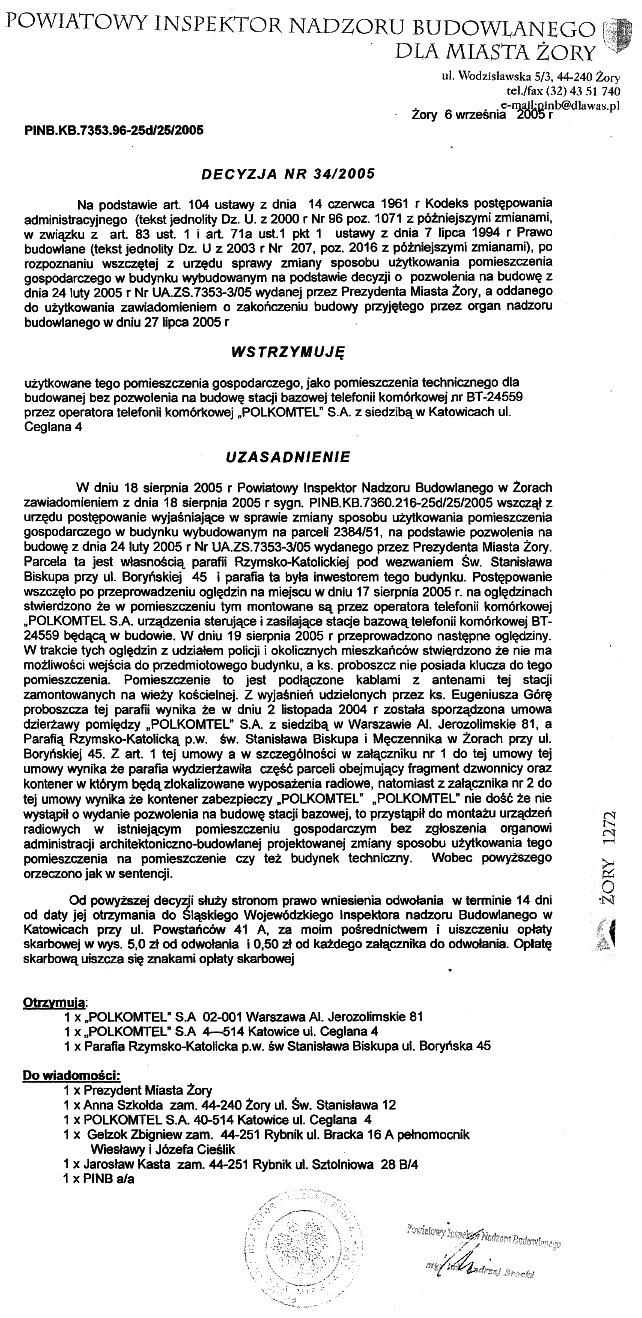 Powiatowy Inspektor Nadzoru Budowlanego dla Miasta Żory, decyzja (.pdf, 130 KB)